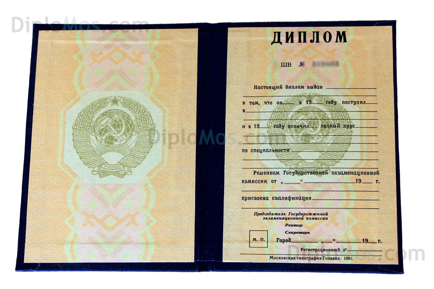 Диплом старого образца об окончании ВУЗа выдавался в советское время и после распада союза вплоть до 1996 года. До 1993-1994 годов в зависимости от ВУЗа заверялся гербовой печатью СССР, а после — печатью РФ. Можем сделать копию по Вашему образцу.